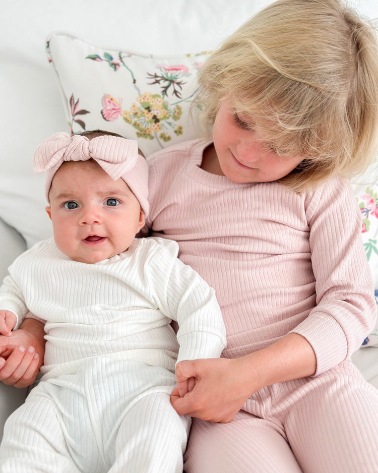 Organic Cotton Rib Long Sleeve PJ Set - Blush